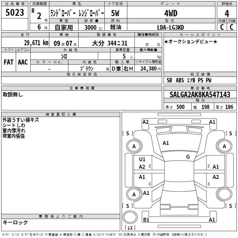 Rover RANGE ROVER с аукциона Японии TAA Kyushu лот № 5023