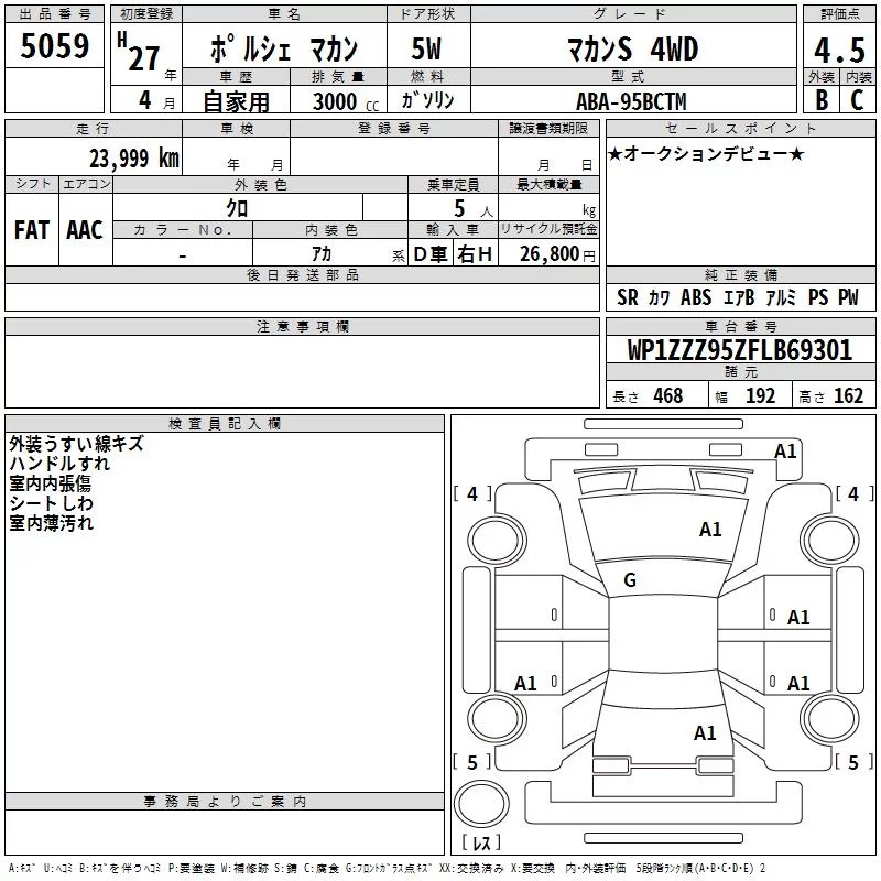 Porsche MACAN с аукциона Японии TAA Kinki лот № 5059