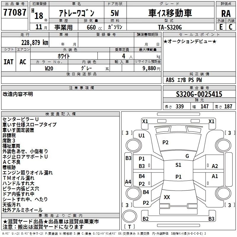Daihatsu Atrai Wagon с аукциона Японии TAA Kinki лот № 77087