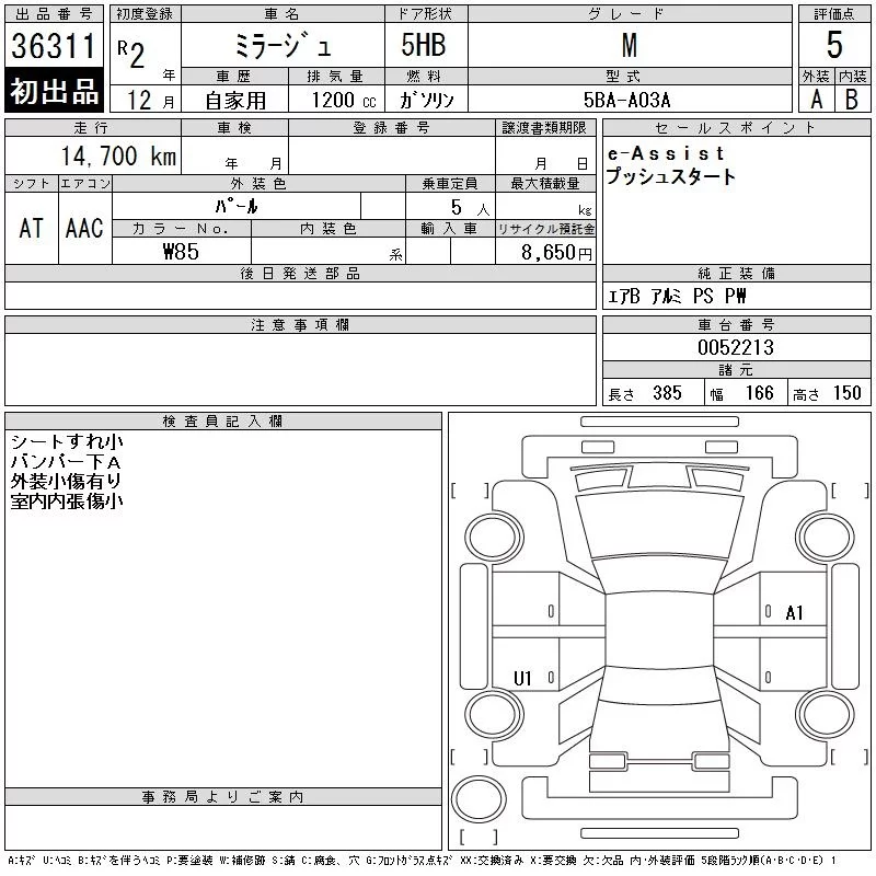 Mitsubishi MIRAGE с аукциона Японии CAA Chubu лот № 36311