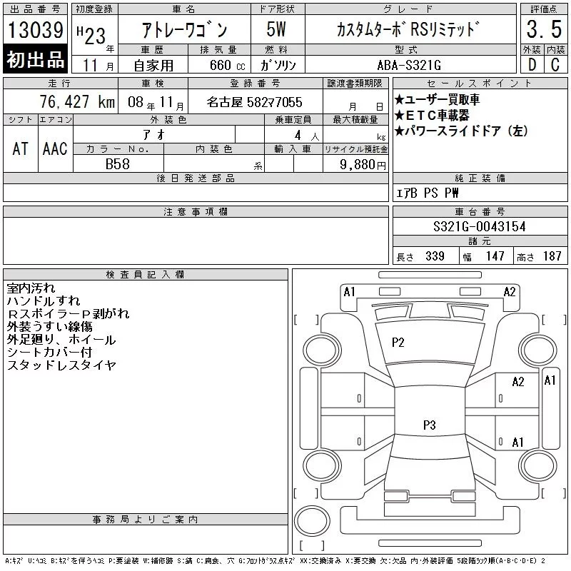 Daihatsu Atrai Wagon с аукциона Японии CAA Chubu лот № 13039