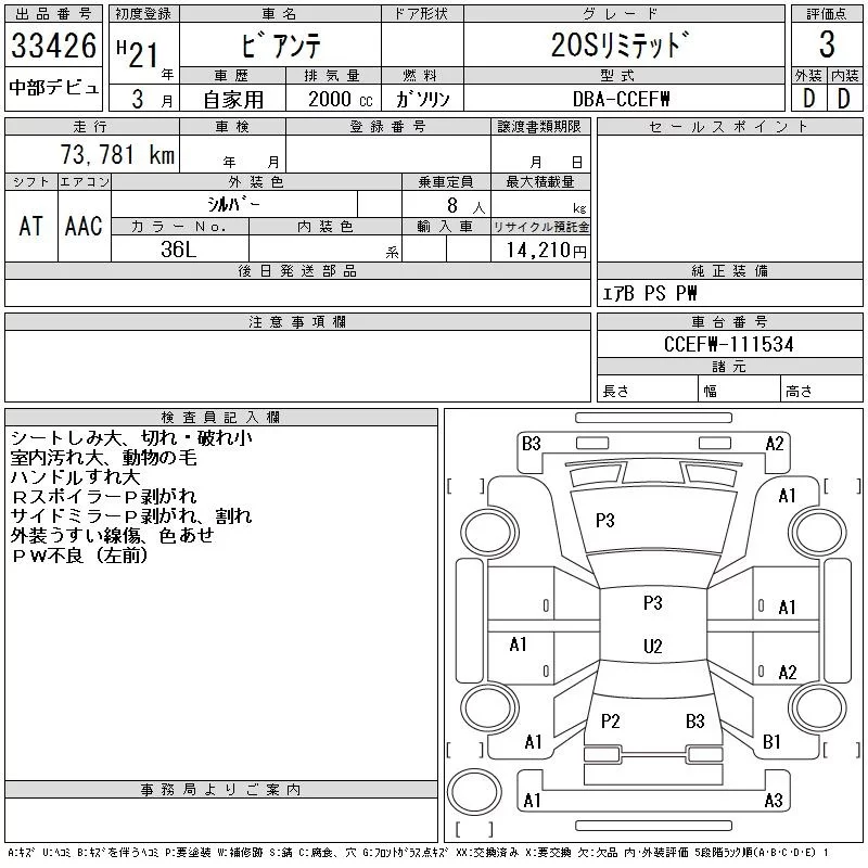 Mazda BIANTE с аукциона Японии CAA Chubu лот № 33426
