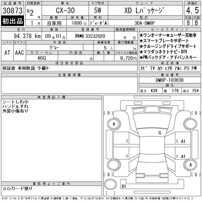 Mazda CX-30 с аукциона Японии CAA Chubu лот № 30873