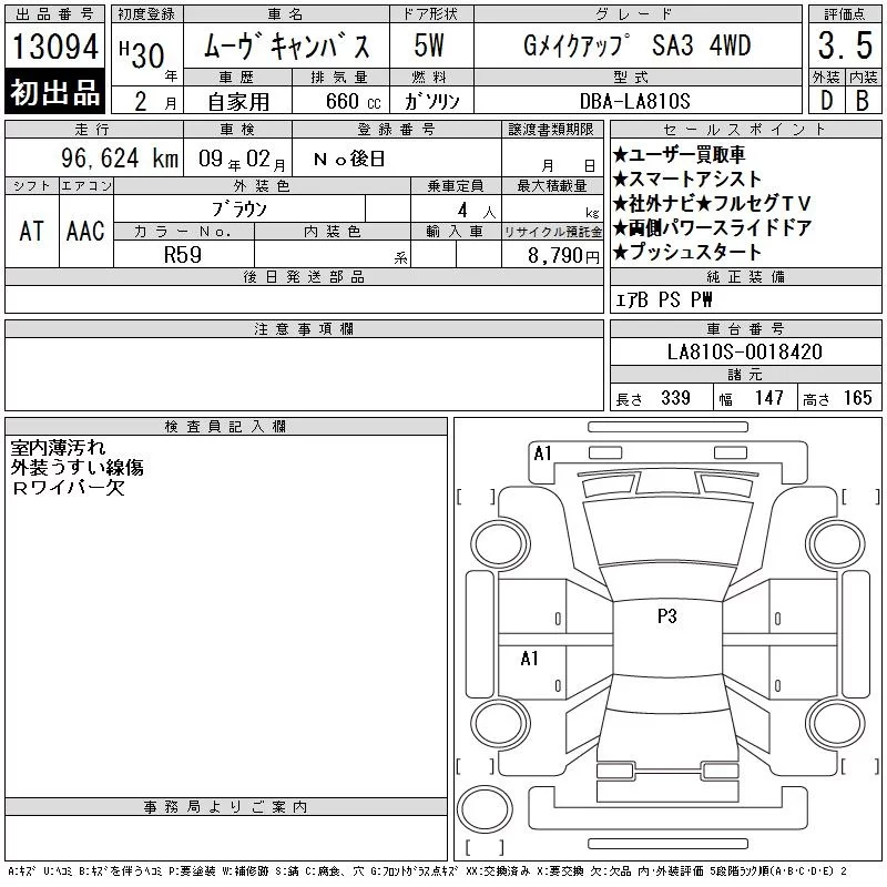 Daihatsu MOVE CANBUS с аукциона Японии CAA Chubu лот № 13094