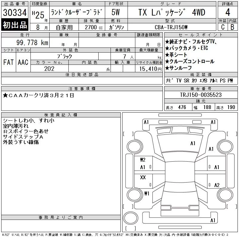 Toyota LAND CRUISER PRADO с аукциона Японии CAA Chubu лот № 30334