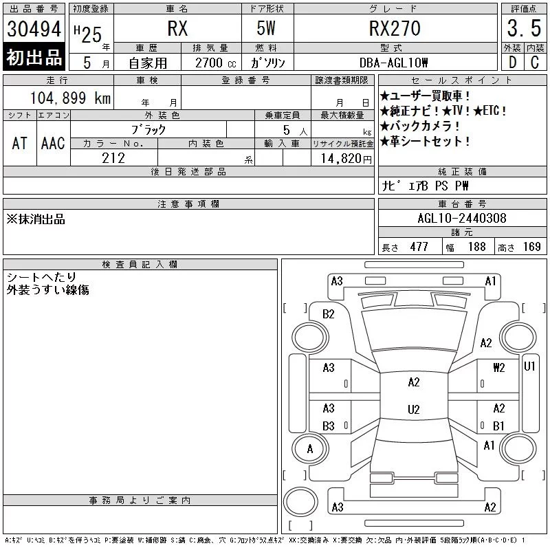 Lexus RX с аукциона Японии CAA Chubu лот № 30494