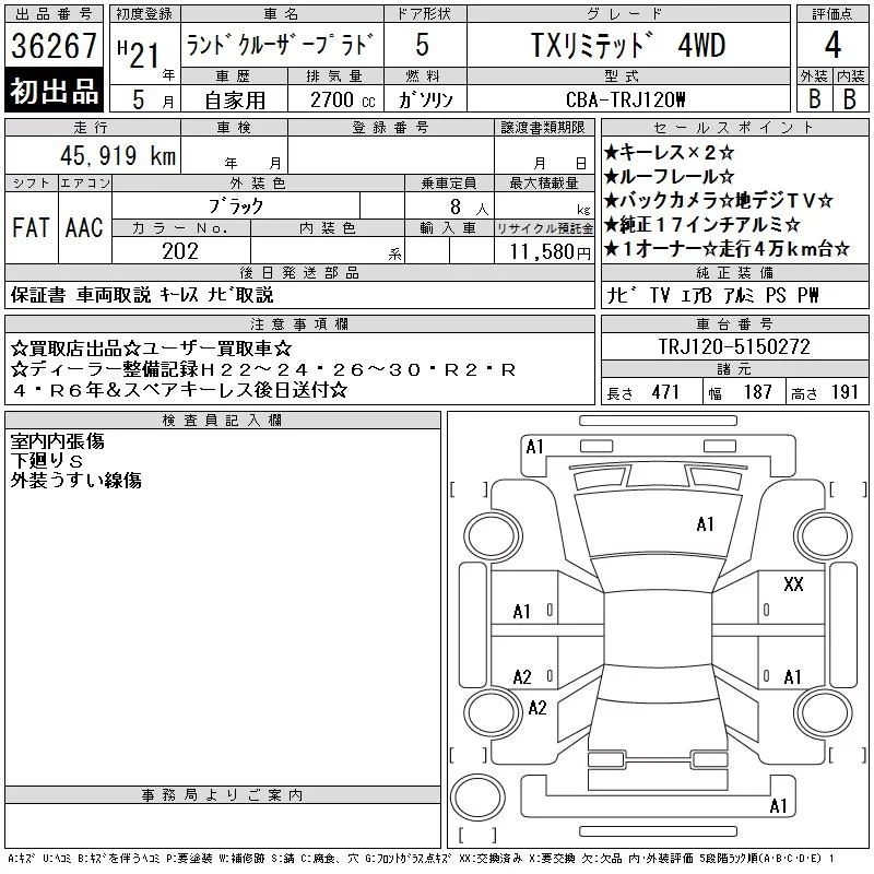 Toyota LAND CRUISER PRADO с аукциона Японии CAA Chubu лот № 36267