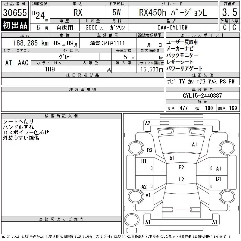 Lexus RX с аукциона Японии CAA Chubu лот № 30655