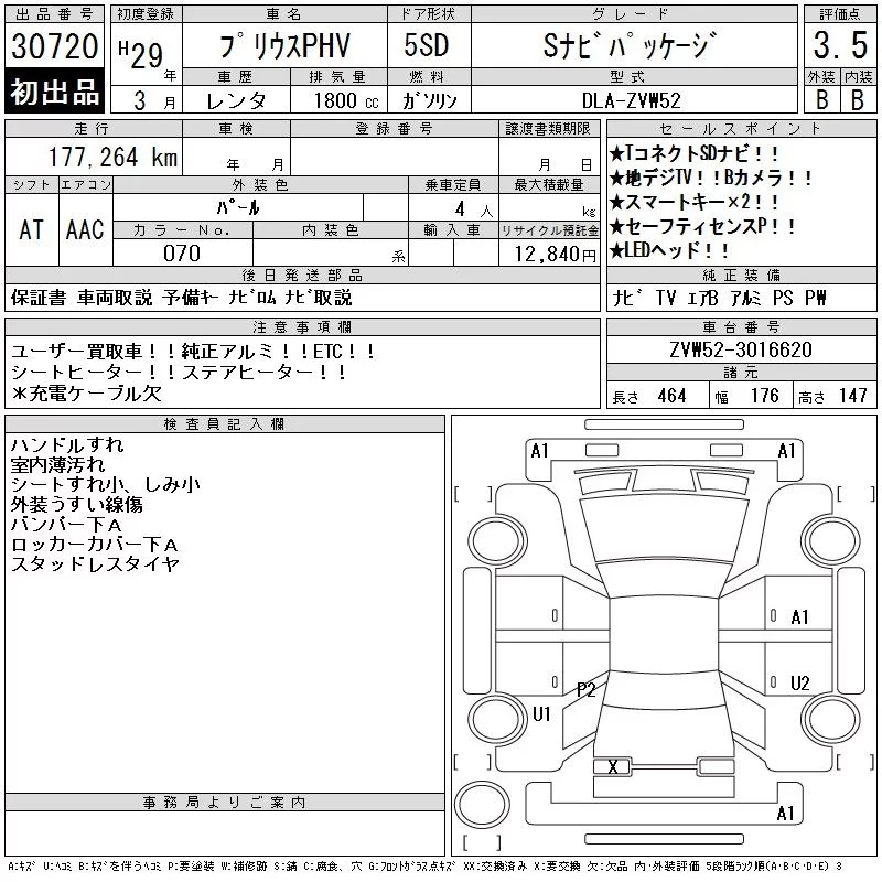 Toyota PRIUS PHV с аукциона Японии CAA Chubu лот № 30720
