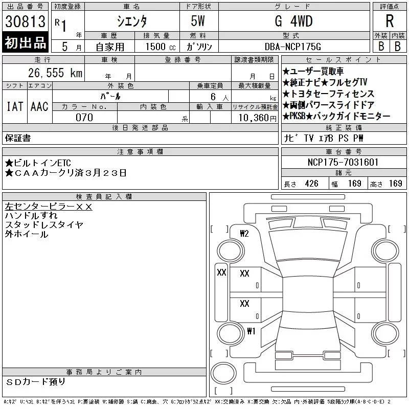 Toyota SIENTA с аукциона Японии CAA Chubu лот № 30813