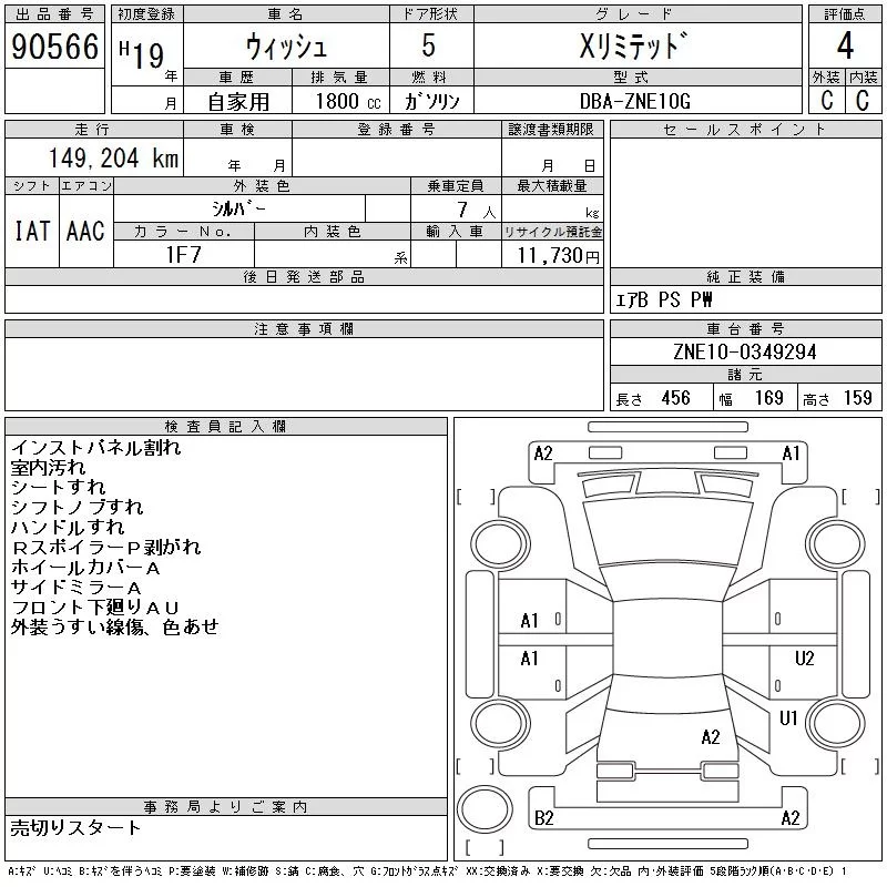 Toyota WISH с аукциона Японии CAA Chubu лот № 90566