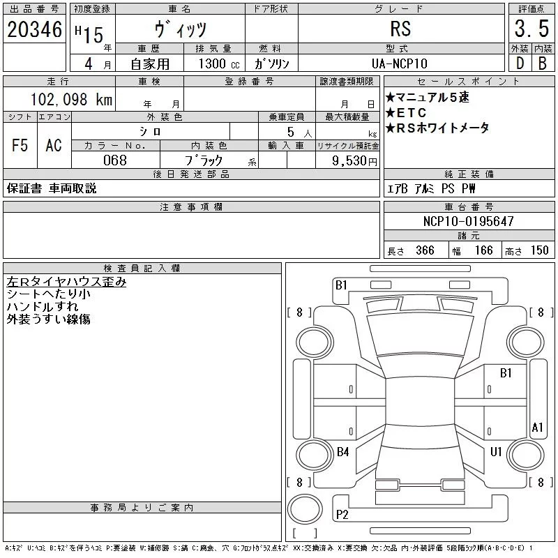 Toyota VITZ с аукциона Японии CAA Chubu лот № 20346