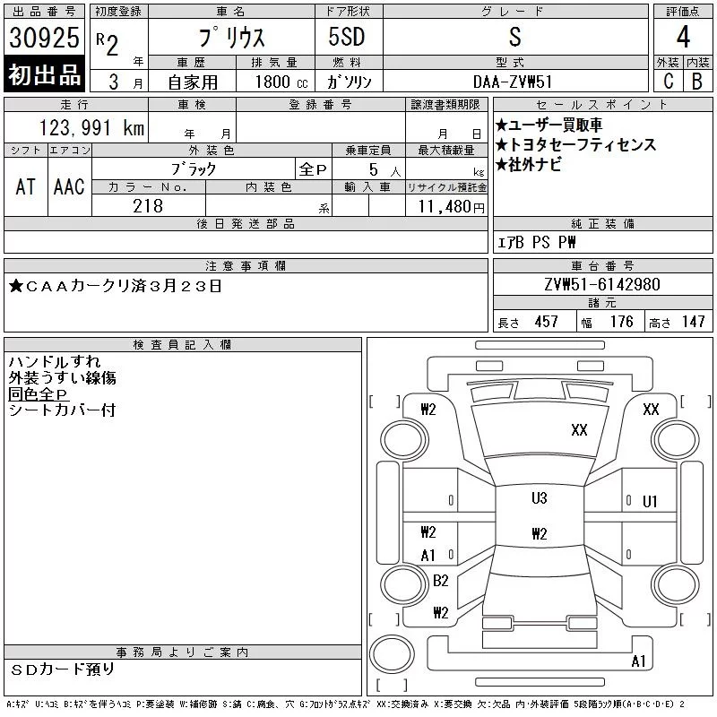 Toyota Prius с аукциона Японии CAA Chubu лот № 30925
