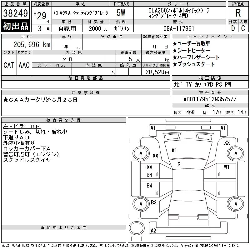 Mercedes-Benz CLA CLASS с аукциона Японии CAA Chubu лот № 38249