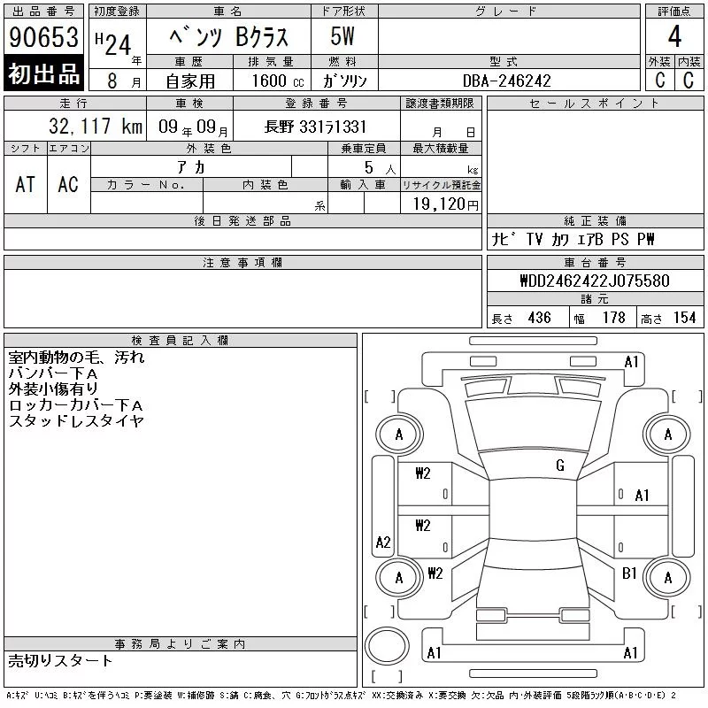 Mercedes-Benz B CLASS с аукциона Японии CAA Chubu лот № 90653