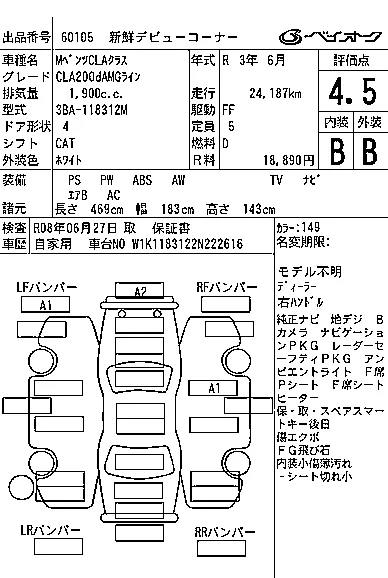 Mercedes-Benz CLA CLASS с аукциона Японии BAYAUC лот № 60105
