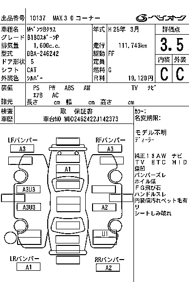 Mercedes-Benz B CLASS с аукциона Японии BAYAUC лот № 10137