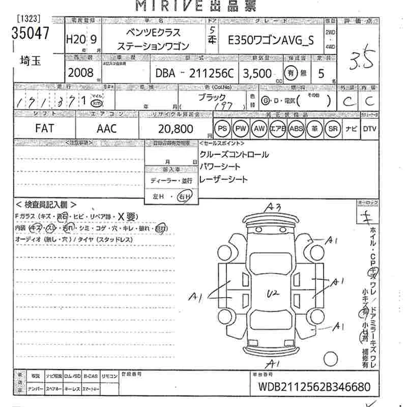 Mercedes-Benz E CLASS WAGON с аукциона Японии MIRIVE Saitama лот № 35047