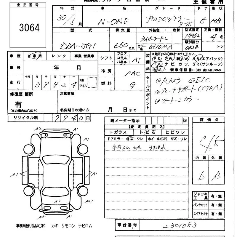 Honda N ONE с аукциона Японии KCAA Minami Kyushu лот № 3064