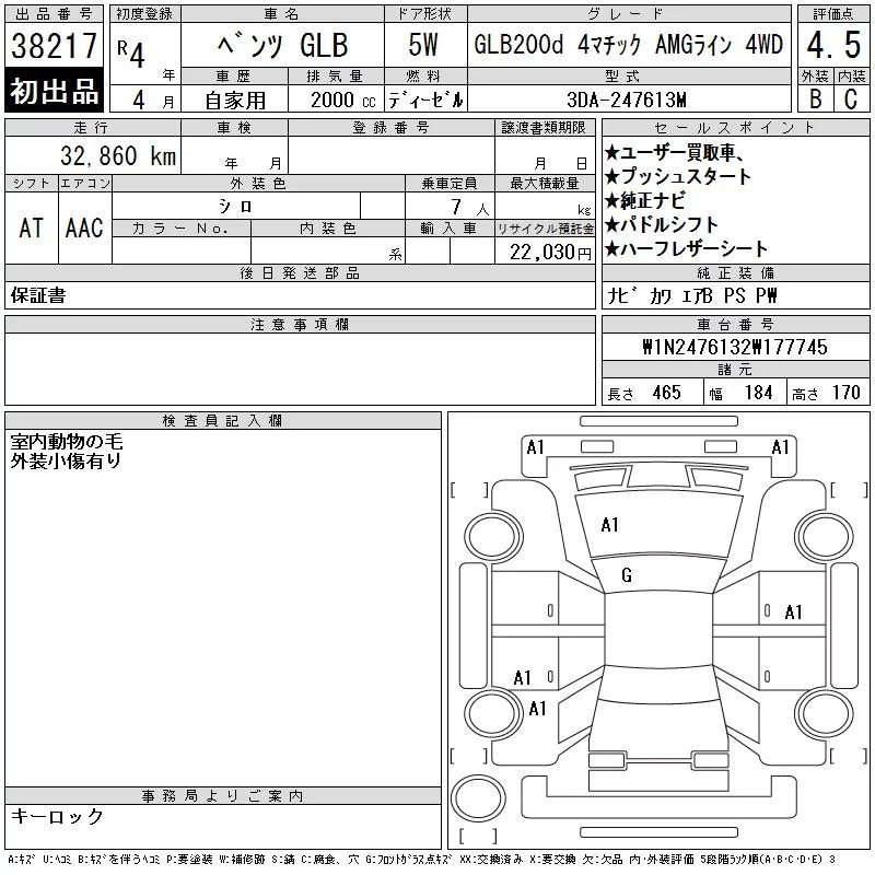 Mercedes-Benz GLB с аукциона Японии CAA Chubu лот № 38217