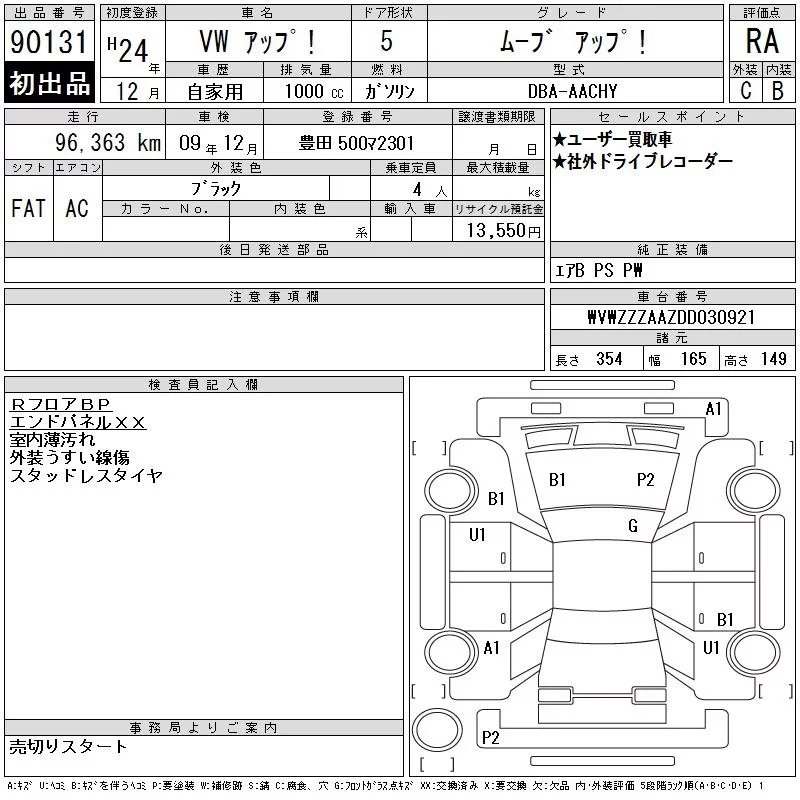 Volkswagen UP с аукциона Японии CAA Chubu лот № 90131