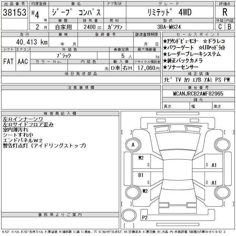 Chrysler JEEP COMPASS с аукциона Японии CAA Chubu лот № 38153