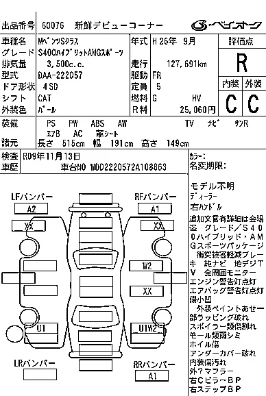 Mercedes-Benz S CLASS с аукциона Японии BAYAUC лот № 60076