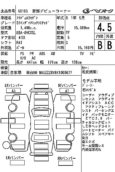 Audi A3 с аукциона Японии BAYAUC лот № 60103