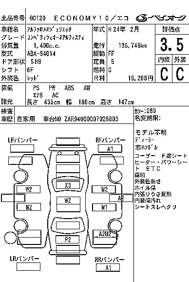 Alfa Romeo Giulietta с аукциона Японии BAYAUC лот № 120