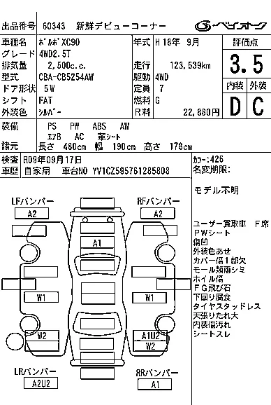 Volvo XC90 с аукциона Японии BAYAUC лот № 60343