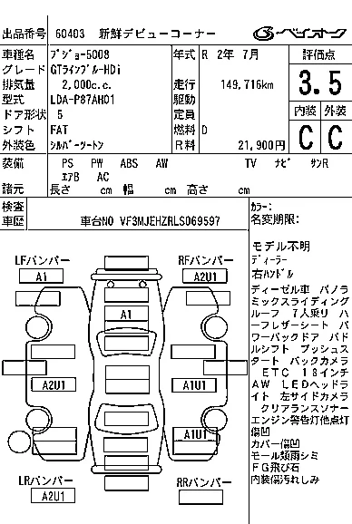 Peugeot 5008 с аукциона Японии BAYAUC лот № 60403