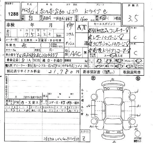 Volvo S60 с аукциона Японии IAA Osaka лот № 1288