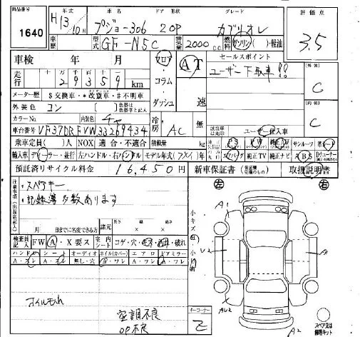 Peugeot 306 с аукциона Японии IAA Osaka лот № 1640