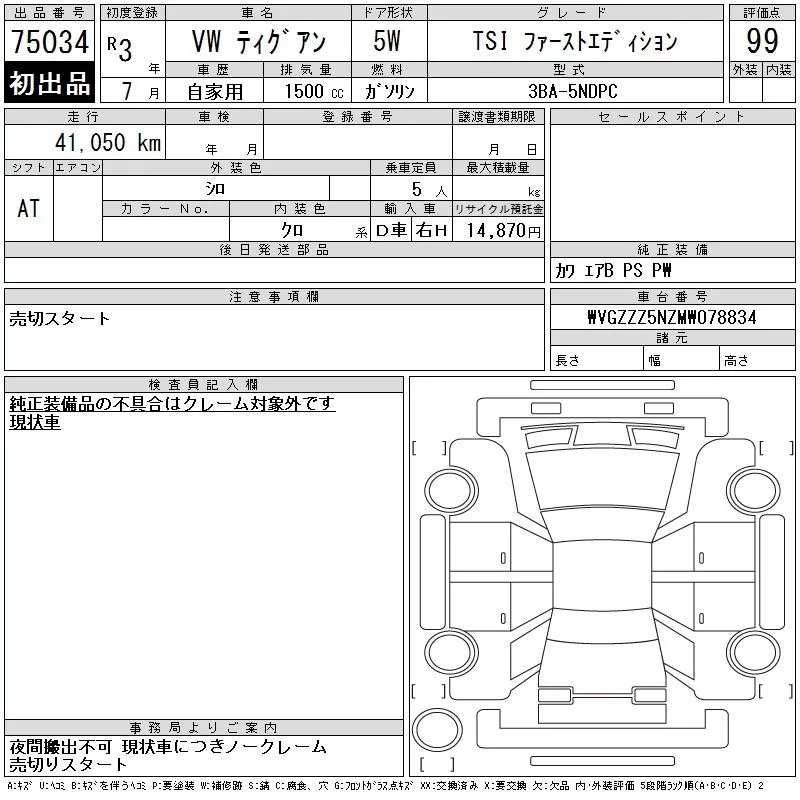 Volkswagen Tiguan с аукциона Японии CAA Chubu лот № 75034