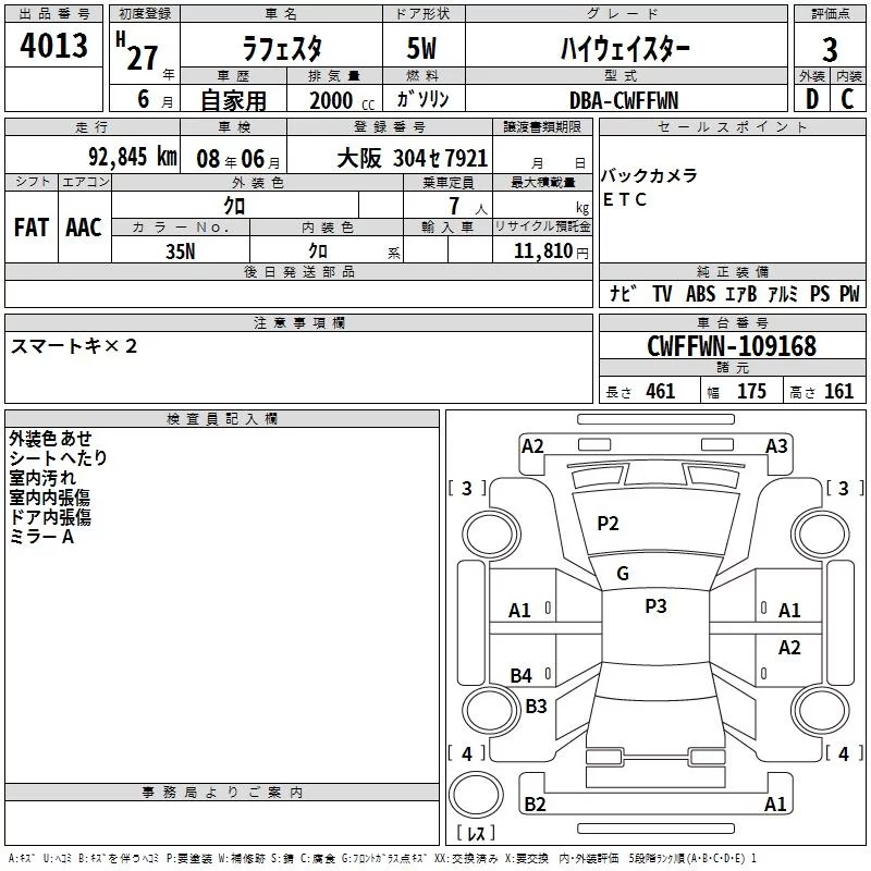 Nissan LAFESTA с аукциона Японии TAA Chubu лот № 4013