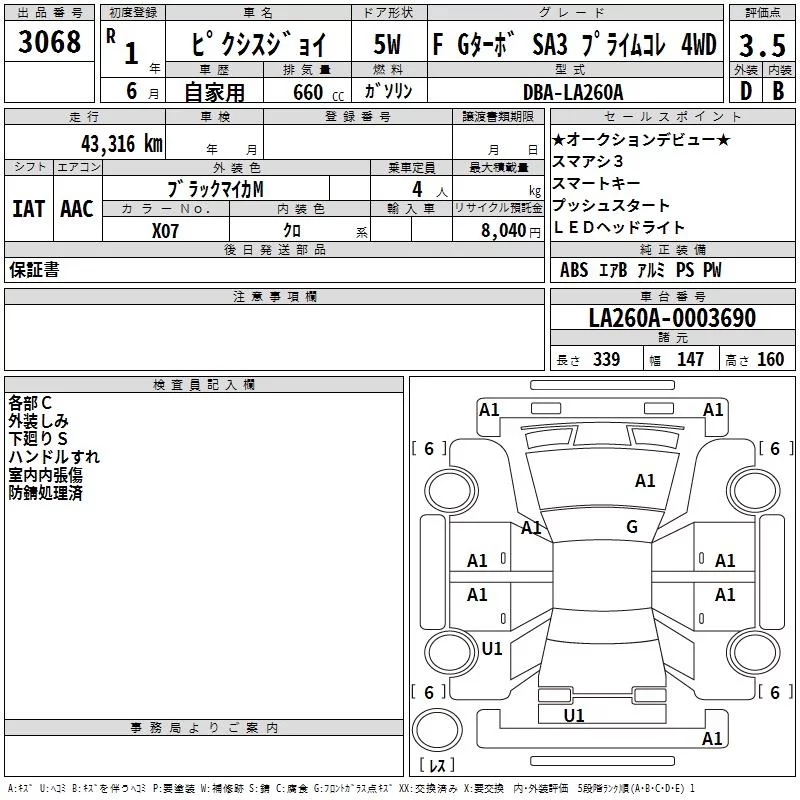 Toyota PIXIS JOY с аукциона Японии TAA Hokkaido лот № 3068