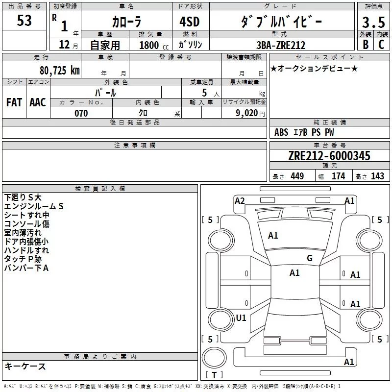Toyota COROLLA с аукциона Японии TAA Tohoku лот № 53