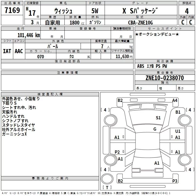 Toyota WISH с аукциона Японии TAA Tohoku лот № 7169