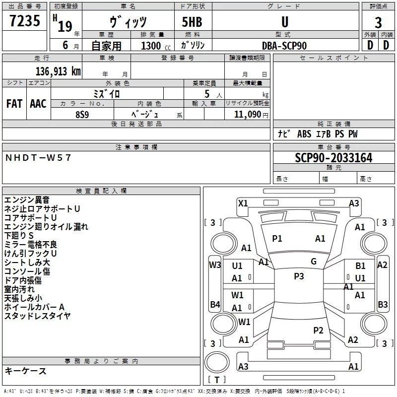 Toyota VITZ с аукциона Японии TAA Tohoku лот № 7235