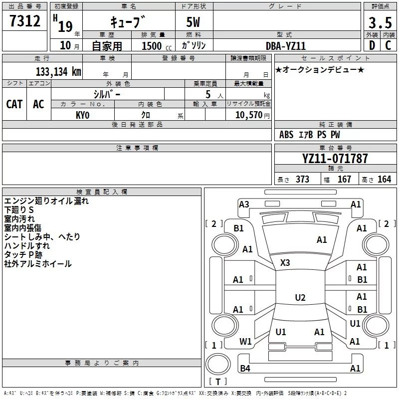 Nissan CUBE с аукциона Японии TAA Tohoku лот № 7312