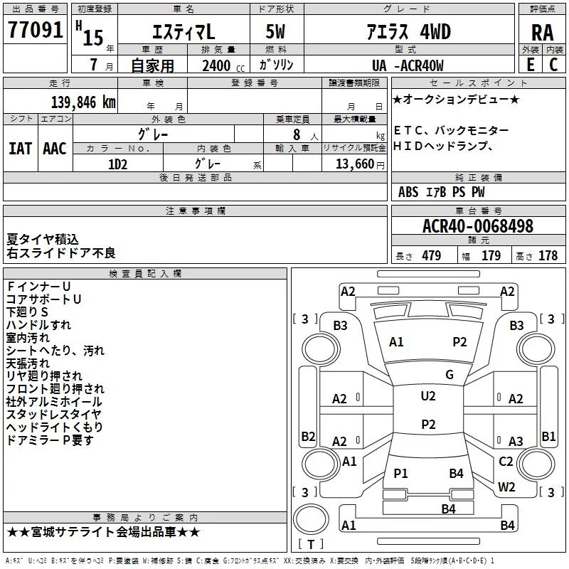 Toyota ESTIMA с аукциона Японии TAA Tohoku лот № 77091