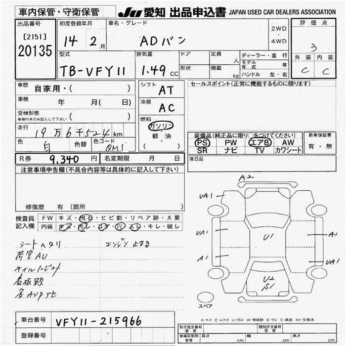 Nissan AD с аукциона Японии JU Aichi лот № 20135