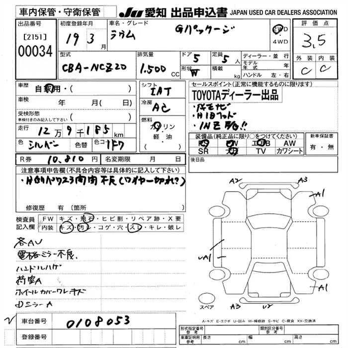 Toyota RAUM с аукциона Японии JU Aichi лот № 34