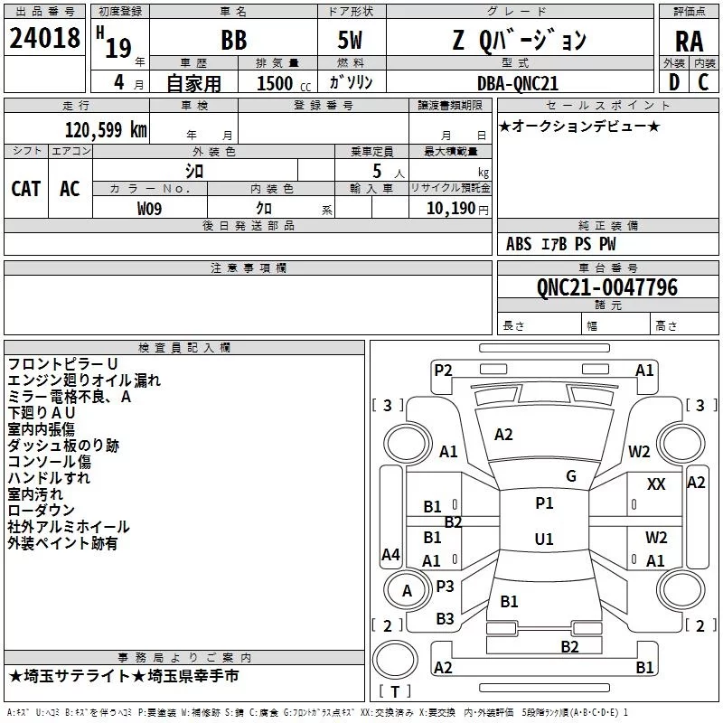 Toyota BB с аукциона Японии TAA Kanto лот № 24018