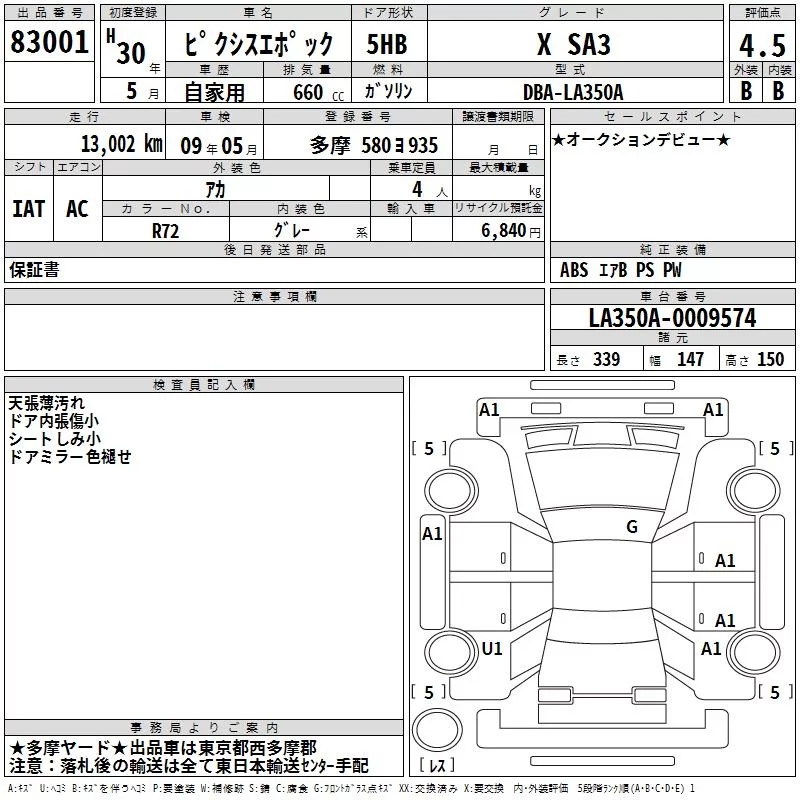 Toyota PIXIS EPOCH с аукциона Японии TAA Kanto лот № 83001