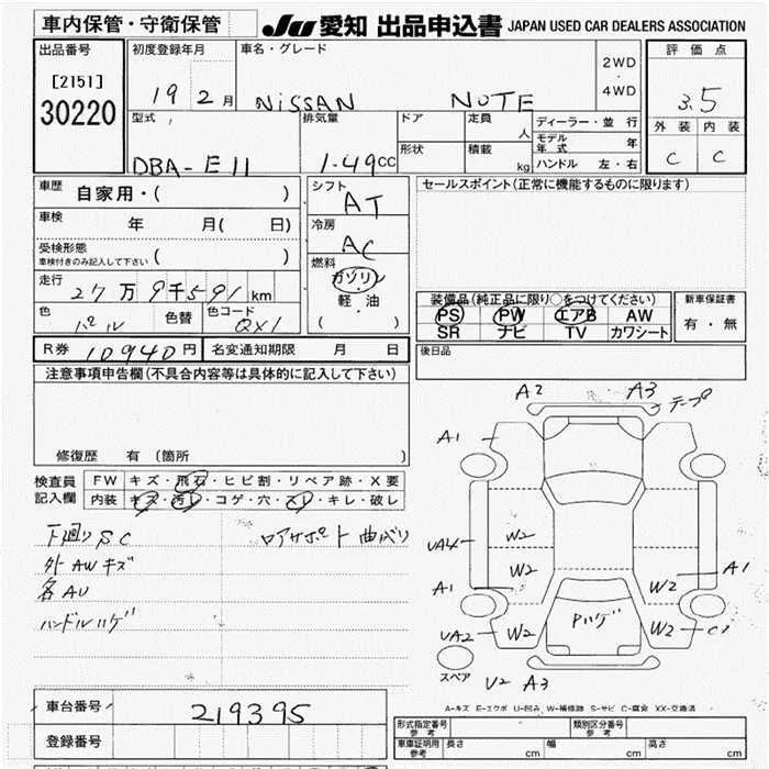 Nissan NOTE с аукциона Японии JU Aichi лот № 30220