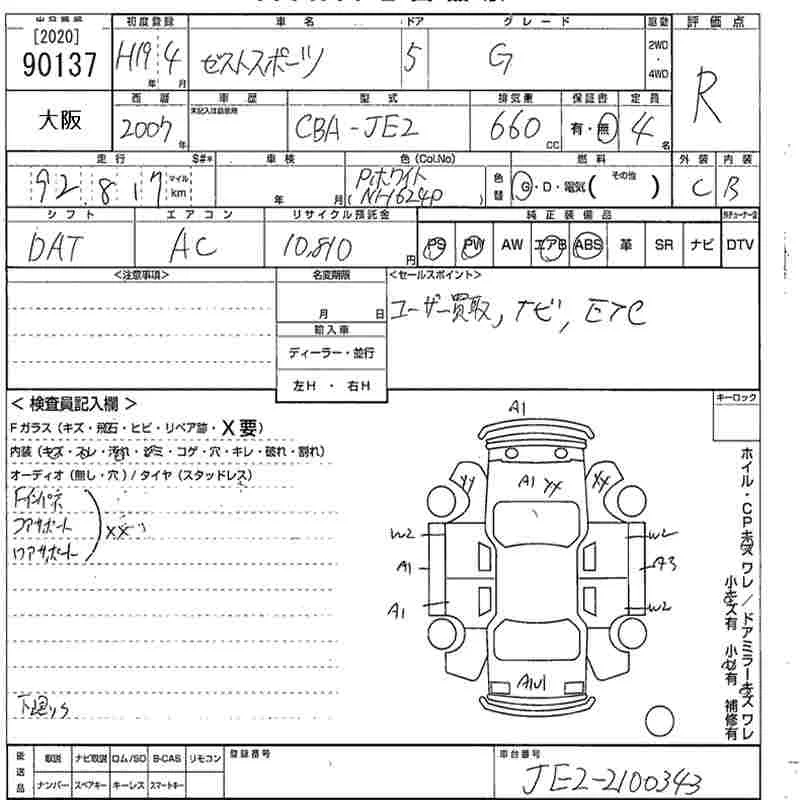 Honda ZEST с аукциона Японии MIRIVE Osaka лот № 90137