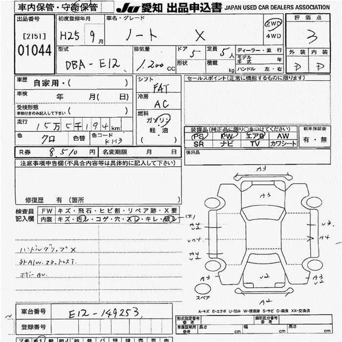 Nissan NOTE с аукциона Японии JU Aichi лот № 1044