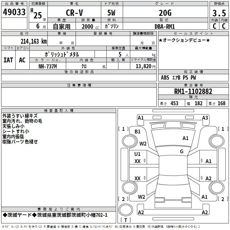 Honda CR-V с аукциона Японии TAA Kanto лот № 49033