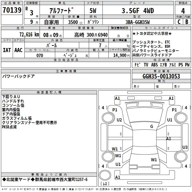 Toyota ALPHARD с аукциона Японии TAA Kanto лот № 70139